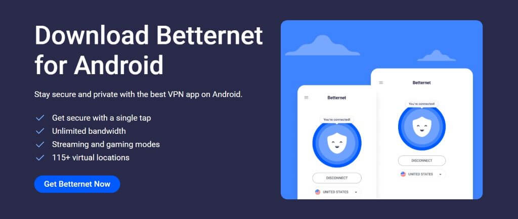 Установка приложения Betternet возможна двумя способами: через сайт или напрямую через магазин приложений Google Play. В первом случае, вам необходимо перейти на официальный ресурс продукта и выбрать из списка требуемую платформу. При этом рекомендуется включить сторонний ВПН, так как Betternet заблокирован на территории России.