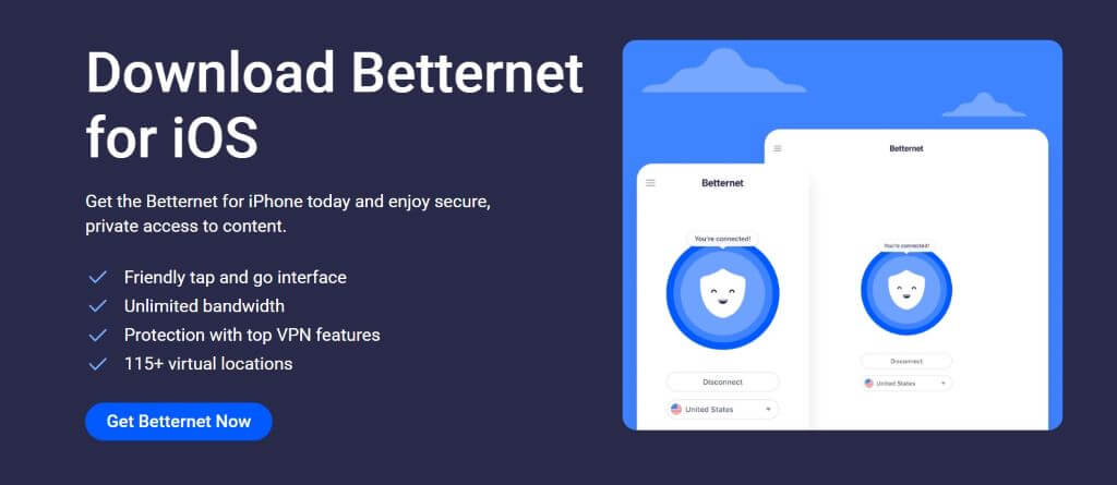 На устройства Apple приложение Betternet можно поставить напрямую через магазин AppStore, а можно воспользоваться для этого сайтом. Во втором случае, вам потребуется предварительно включить сторонний VPN для доступа к ресурсу. Зайдя на ресурс, перейдите к панели с иконками нужной вам платформы.