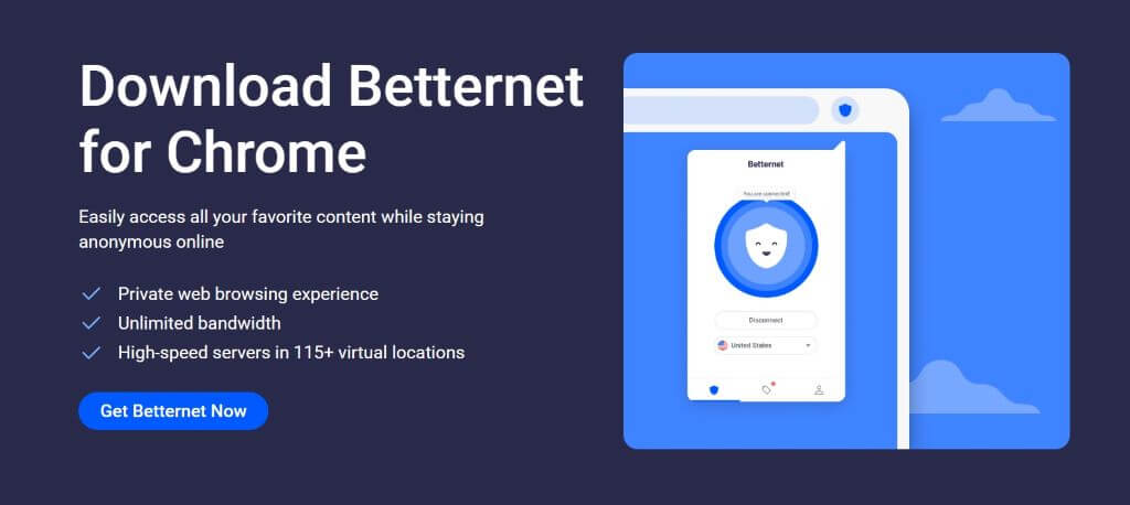 Для установки расширения Betternet на браузер от Google перейдите на официальный сайт betternet.co, предварительно активировав стороннее VPN приложение.